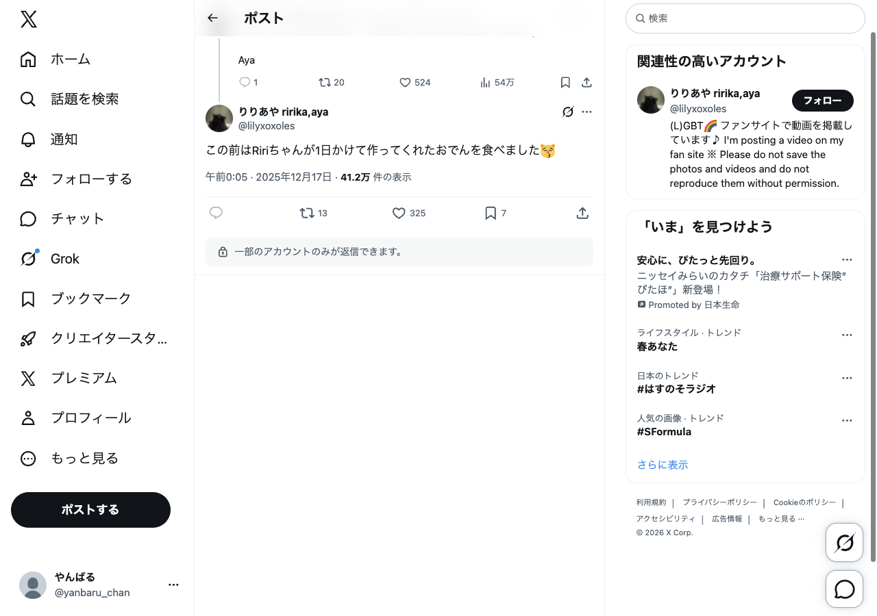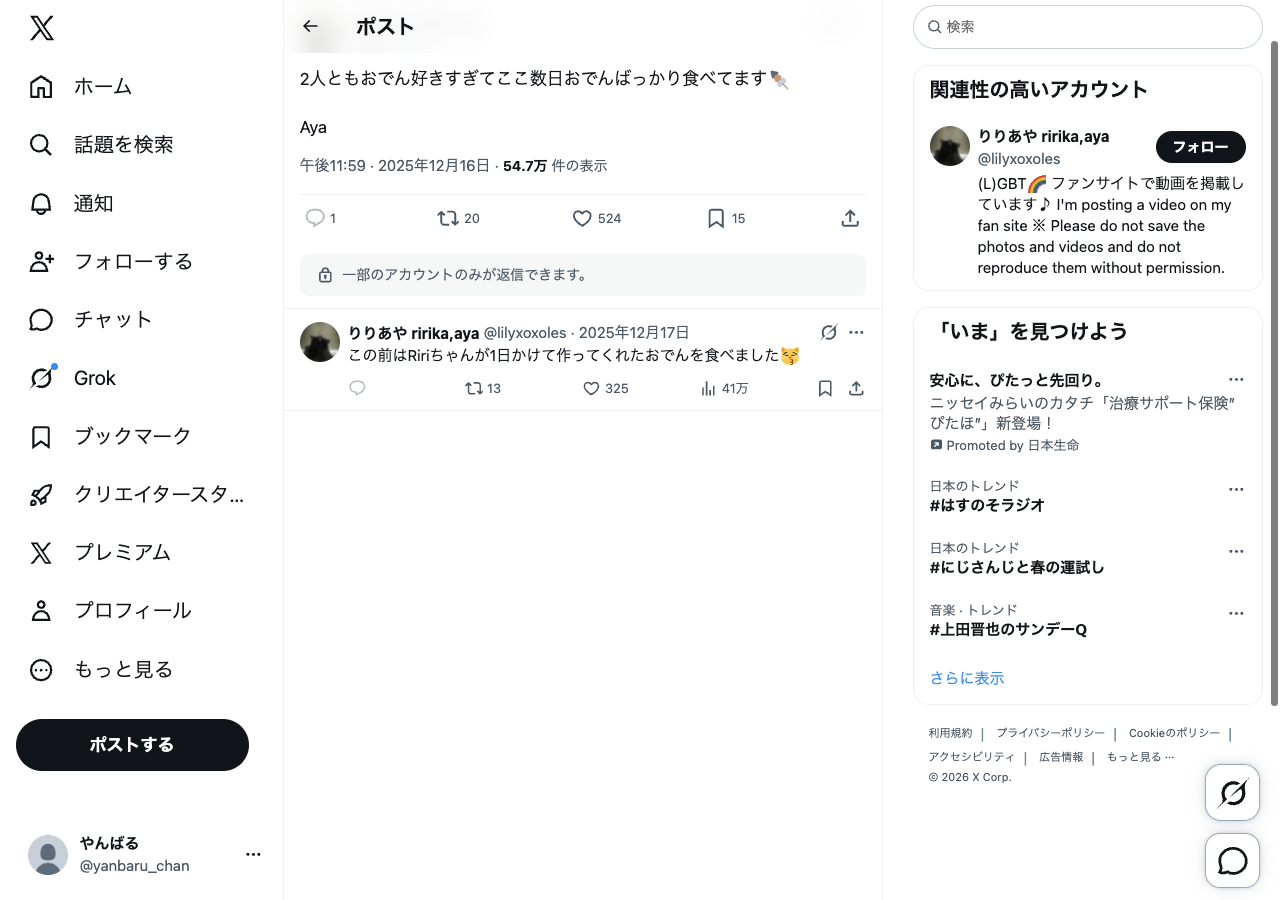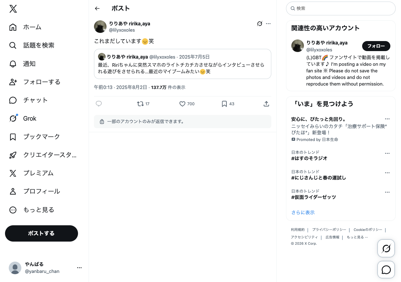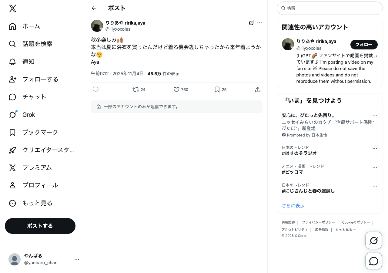 参考投稿のスクショ・メモ — @lilyxoxoles でフィルタ中