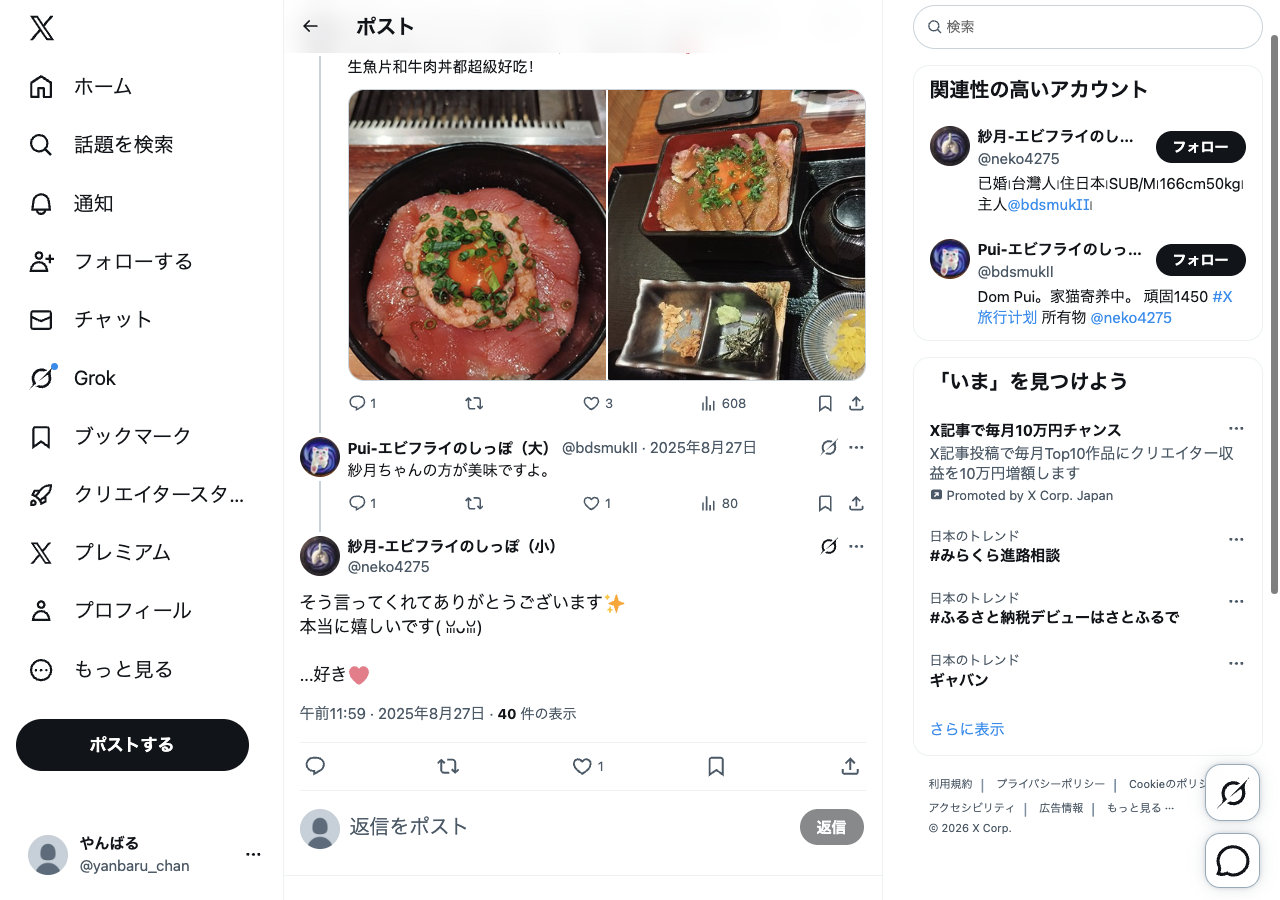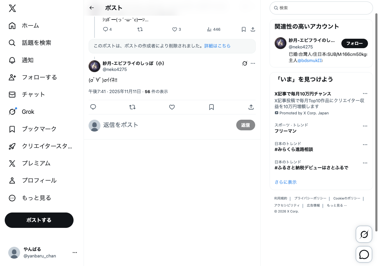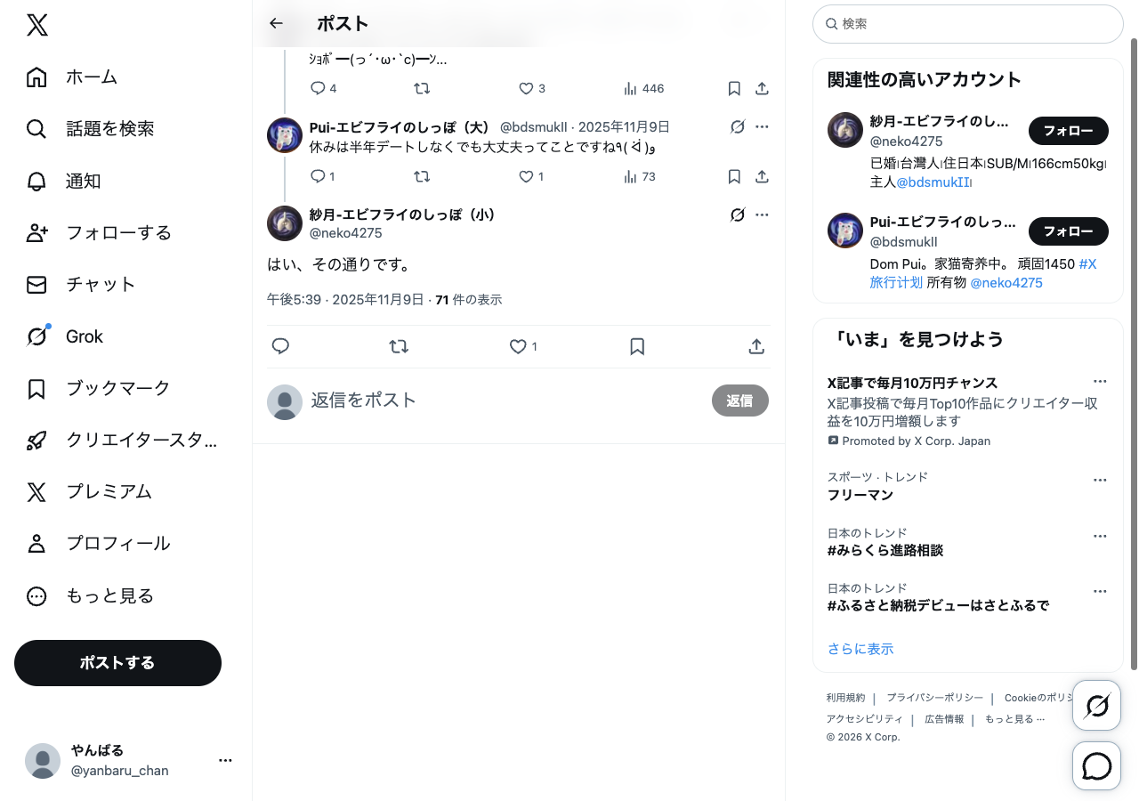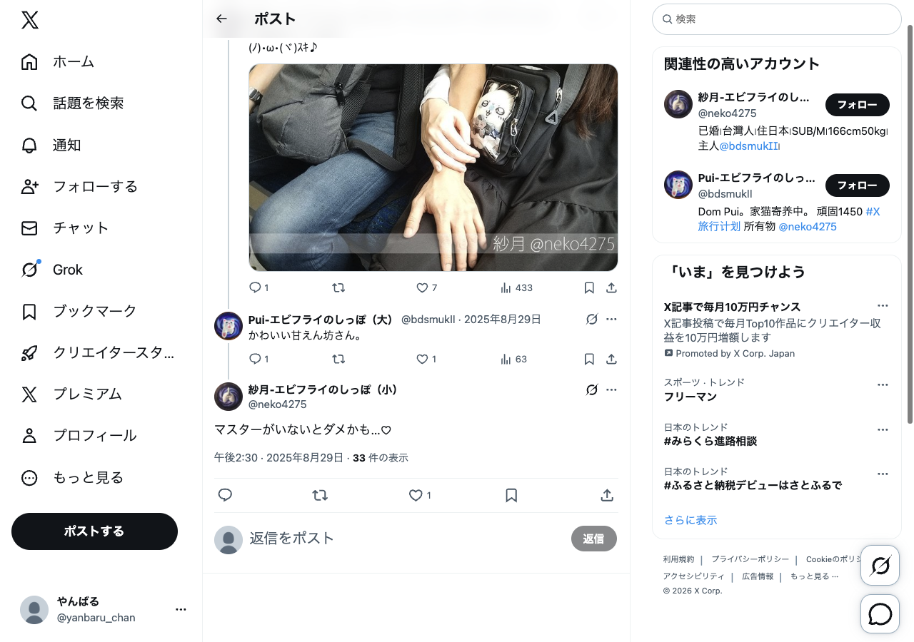 参考投稿のスクショ・メモ — @neko4275 でフィルタ中