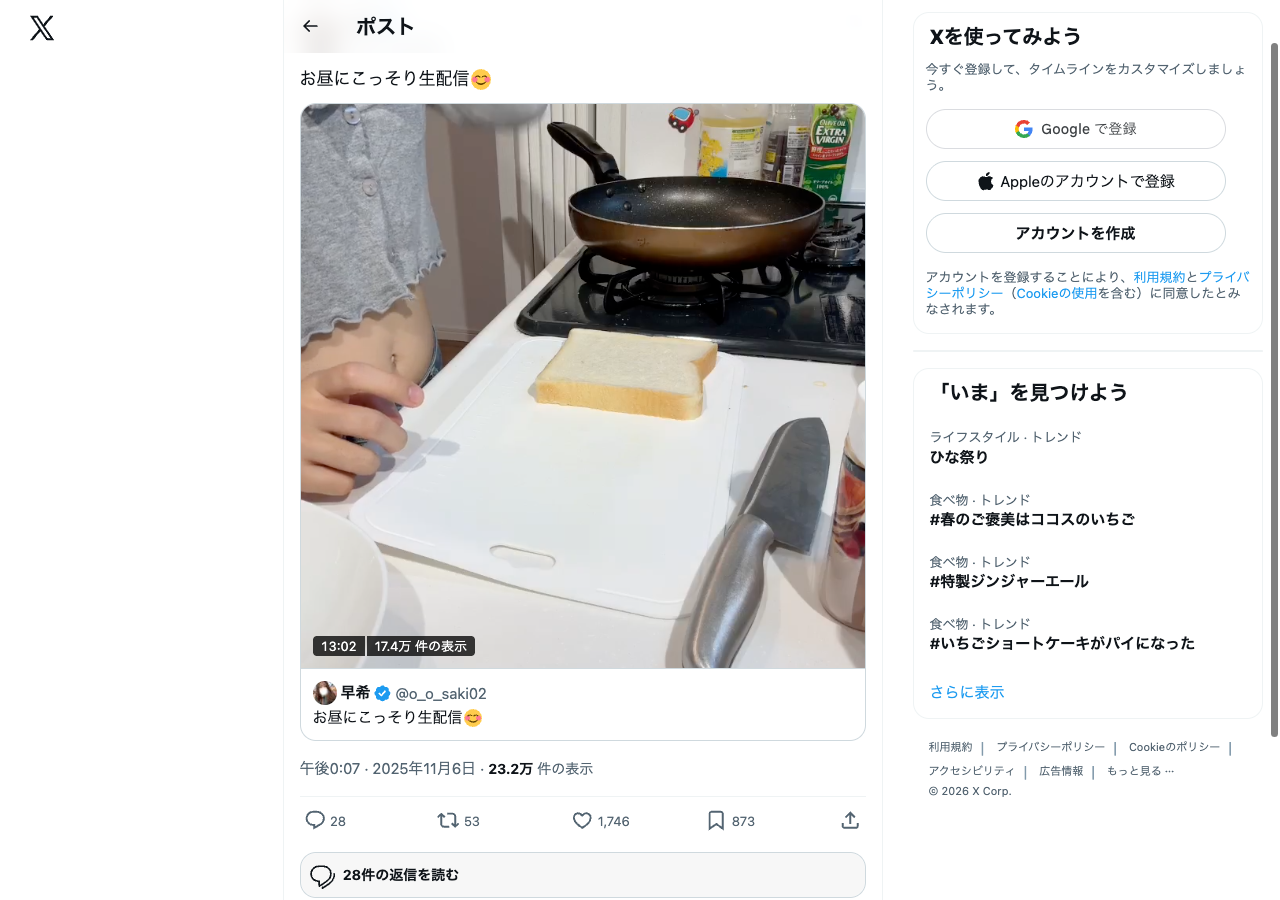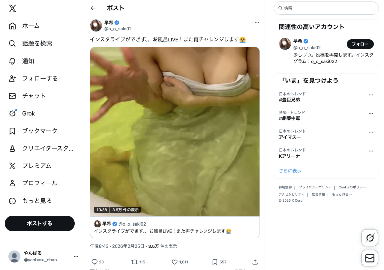 間も無くXでも配信します