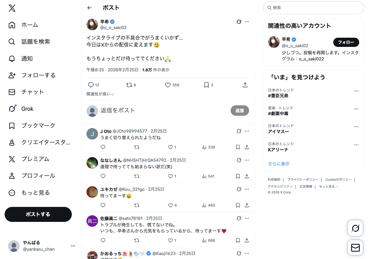 今日はXからの配信に変えます