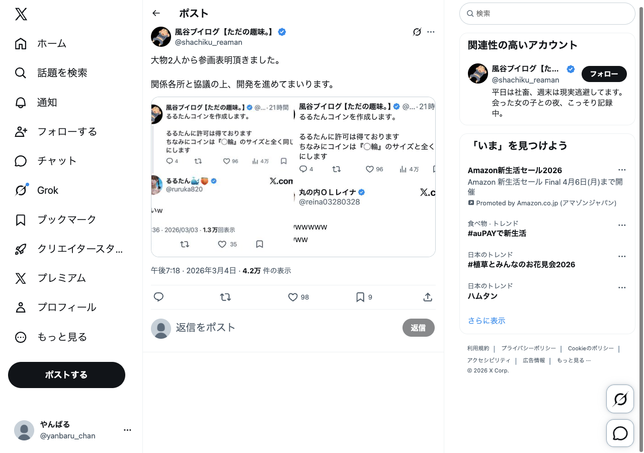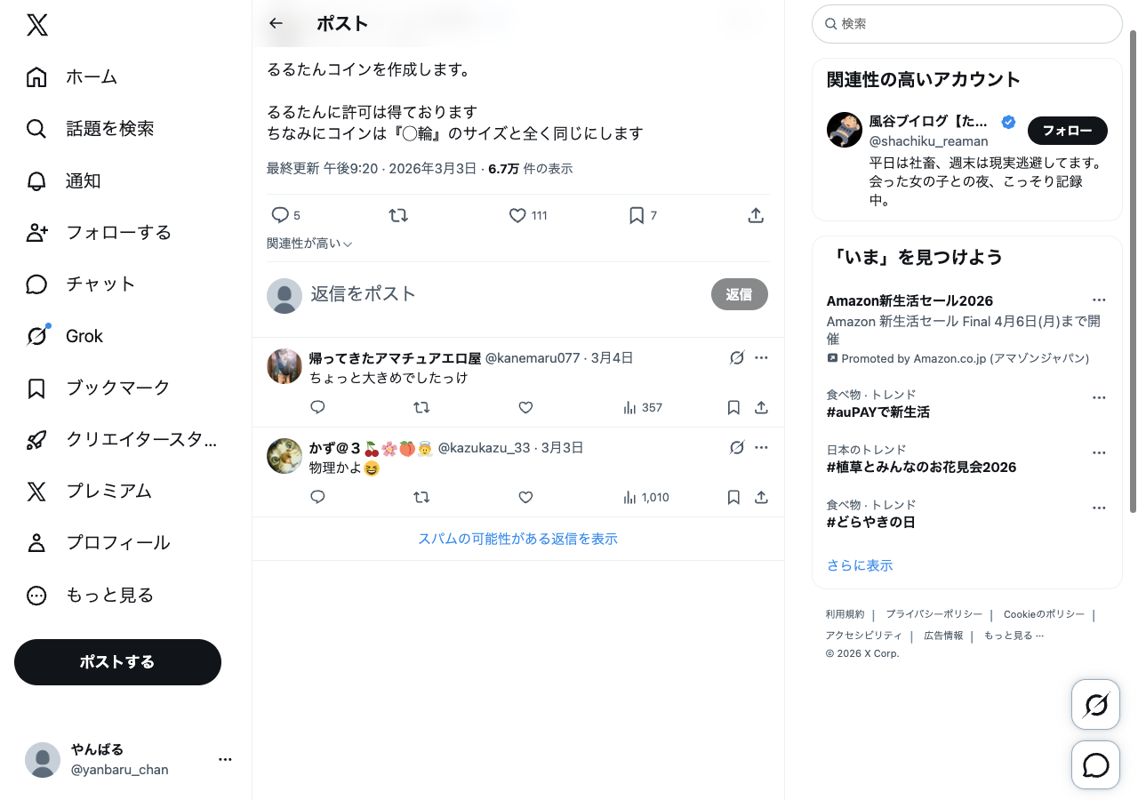 るるたんコインを作成します。