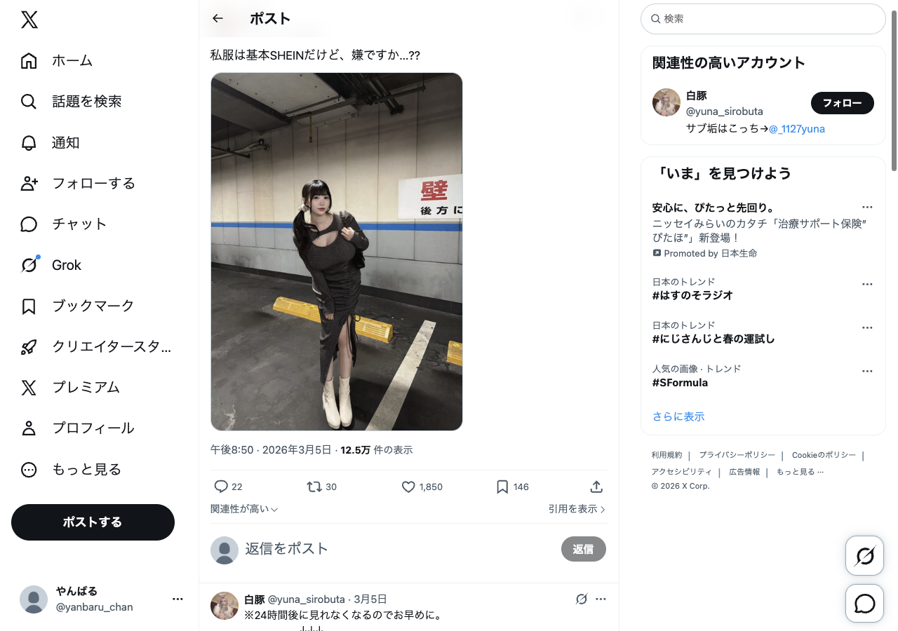 参考投稿のスクショ・メモ — @yuna_sirobuta でフィルタ中